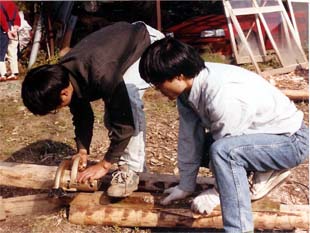 1991年8月~10月 柱を立てて、壁作り。
