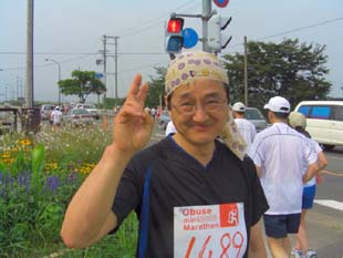 初回から3回連続出場のグルッペチームです。このマラソンは途中、差し入れの果物を食べながら走れるという とても楽しい催しです。 「今年は桃がなかった!バナナがなかった!」と 遅く走った博文はぶつぶつ言っていますが、完走できた喜びはひとしお。来年も頑張るぞ!