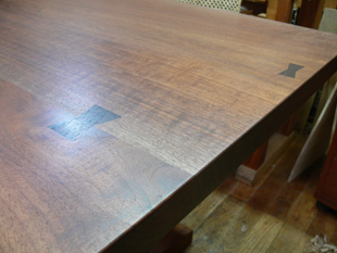 現代はいろんな電動工具や金具それに接着剤が開発されていますので、「シンプルで使い易く、丈夫で長持ち。」のためにも 臨機応変に使いこなしていくことも大事なことです。板を横方向に繋ぐ「板矧ぎ」は以前は「ヤトイザネ」が主流でしたが、 現在はビスケットジョイントシステムと、強力なウレタン系のボンドの併用で矧切れの心配から気持ち開放されました。 また3年ほど前にドミノジョイントという画期的なホゾ組の工具を導入したおかげで、より精度よく丈夫に、 そして何より貴重な材を有効に使ういろんなアイデアが浮かび助かっています。でもなんといっても手工具の鉋は最後の仕上げにかかせません。 研ぎと台の調整と力の入れ方など奥の深い道具で、 うまくかかった時の喜びはプロの職人としての誇りを感じます。健康のためにも極めていきたいと思っています。 話せば切りがない世界ですのでこのへんで・・・