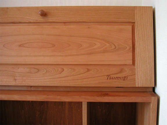 小学校3年生のお嬢様のために作りました。机の幅いっぱいに作業ができること、 チェスト部分がないため 足まわりがゆったりしていることなどから、ライティングデスクを選ばれました。 下の棚を本棚にした実用本位の仕様です。下部をオープン仕様にして、 使いやすさと制作費を抑えることを追求しました。