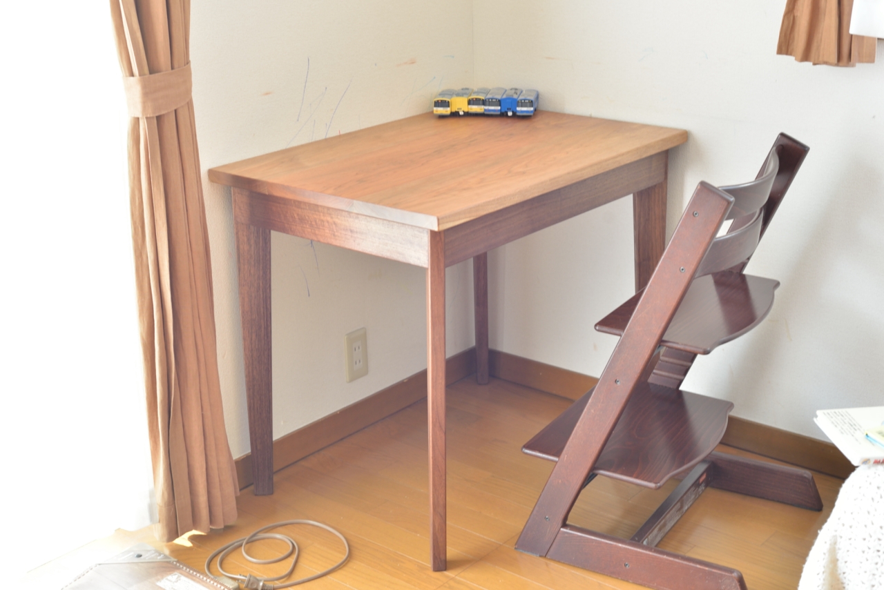 神奈川県Kさん 天板がクルミ・脚がブラックウォールナットの木の学習机