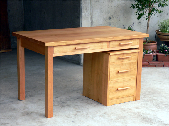小5のお嬢さんの机です。お父さんの熱い想いで、「抽斗の中もすべてサクラで、できれば白太も節無しで」。