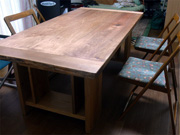 世の中に「何々兼用」というのは山ほどありますが、私の「座卓兼用テーブル」も ご多分にもれず「どっちつかず」。 でもその絶妙なバランスや仕掛けを楽しみたいあなたに取っておきの天板と仕組みを用意しました。 天板と脚が独立しているといろんな使い方ができます。 大勢が集まる日には脚を寝かせて座卓に,また床に直に天板をドーンとおいても楽しいでしょう。
